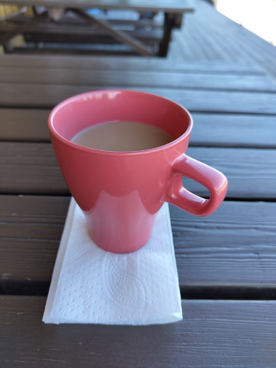 Hyvä kahvipaikka sataman sydeemeissä, Kesähelteillä voipi vedellä pehmistä.